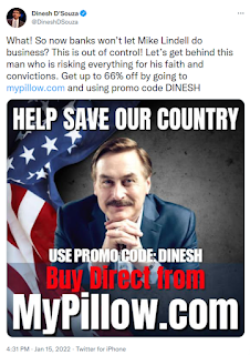 P.S. Here's convicted felon and execrable piece of human garbage Dinesh D'Souza also trying to weasel his way into a commission for pimping out the Pillow Guy: