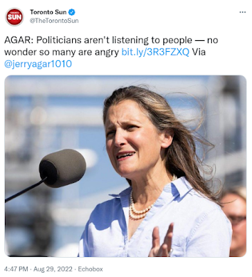 The Toronto Sun's Jerry Agar is the latest to suggest that Chrystia Freeland deserved a little comeuppance: